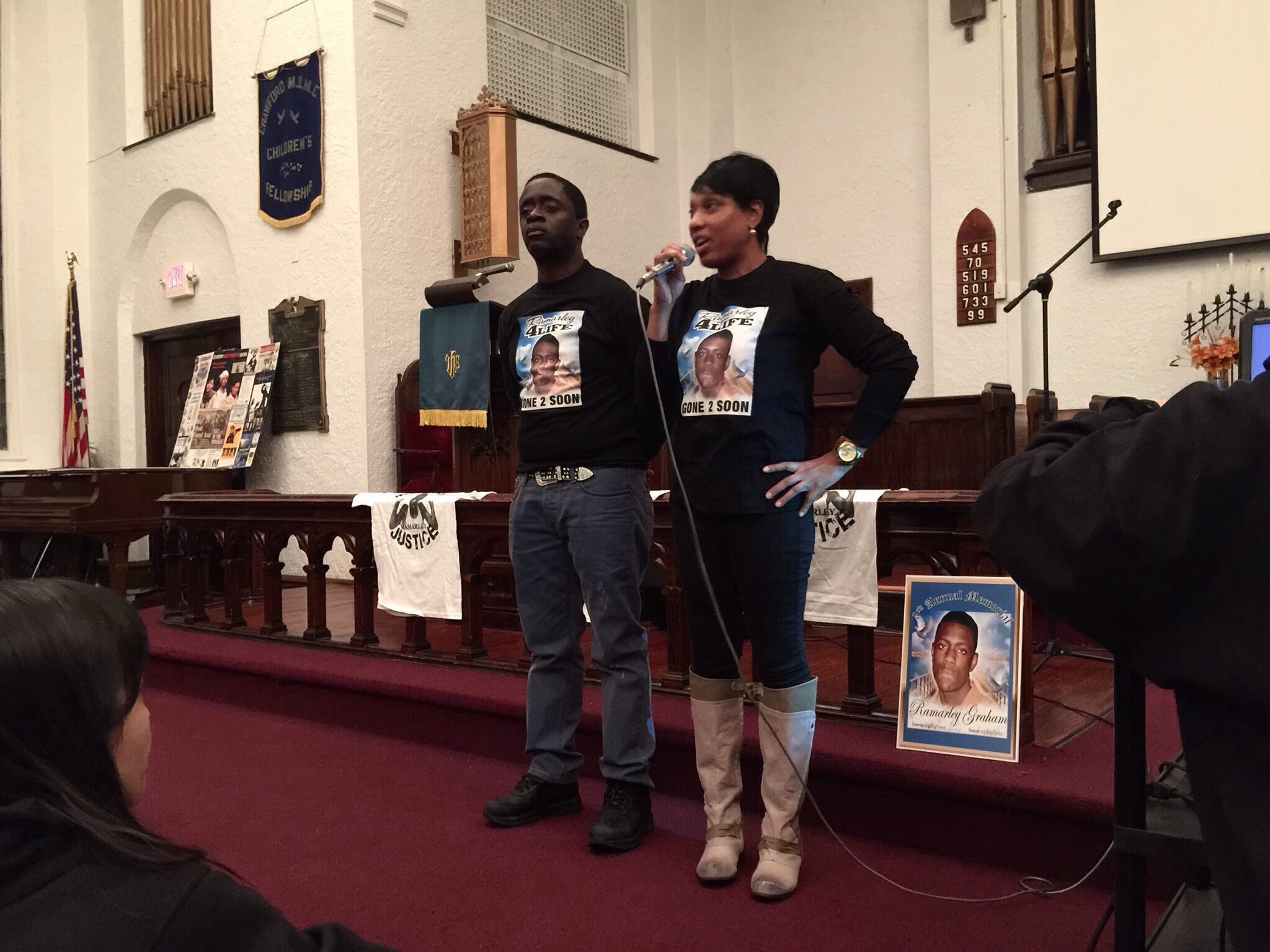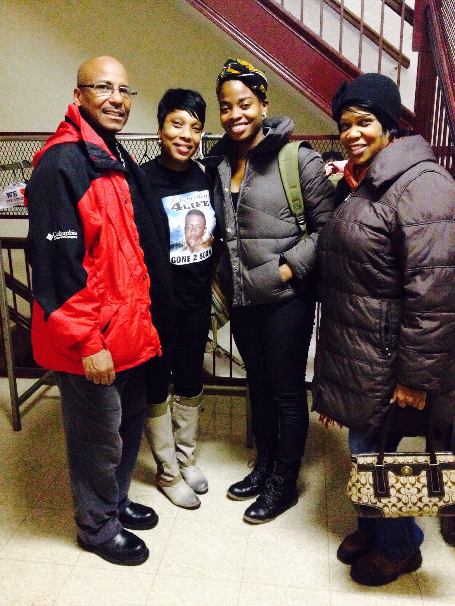 An evening of inhaling love and exhaling hate. The weather was frightful but one by one we walked in. Hugs and kisses. Questions of, “How is the family?” Ramarley Graham brought strangers together all searching for the bandit Justice created family. Frank Graham said, “We will not stop until we get Justice. We are looking forward to the firing of each officers who were a part of the murder of my son. We will be here every single day. On Bridges! On Highways! We will continue.” With the words “Daddy loves you on his back” Frank continued by saying, “Tonight is about the love and respect that we had for Ramarley. We want you to walk out of here understanding that a young man was taken away too soon and how much we love him.”