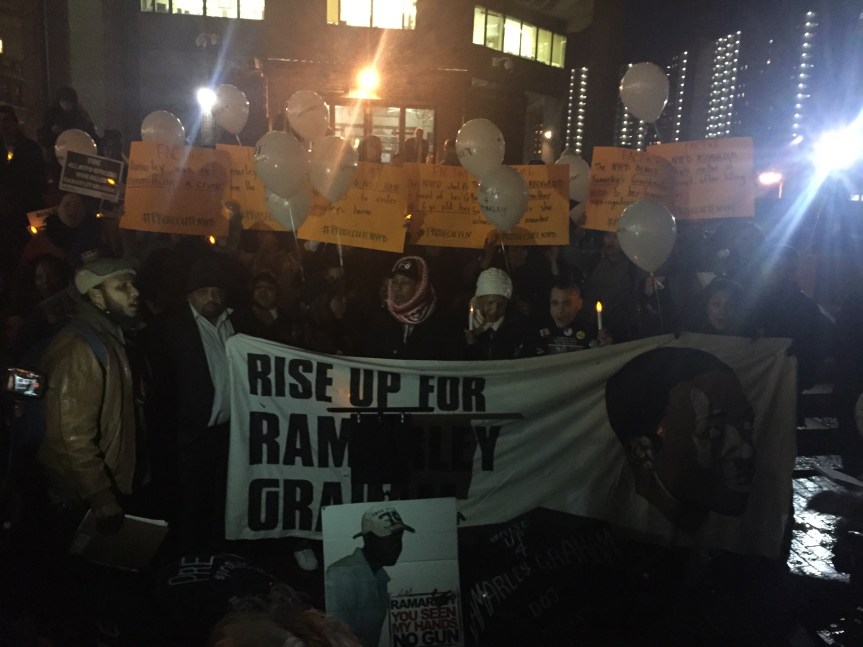 As the chants continue to fill the air, “We stand hand and hand with Ramarley Graham. We stand hand and hand with Ramarley Graham.”