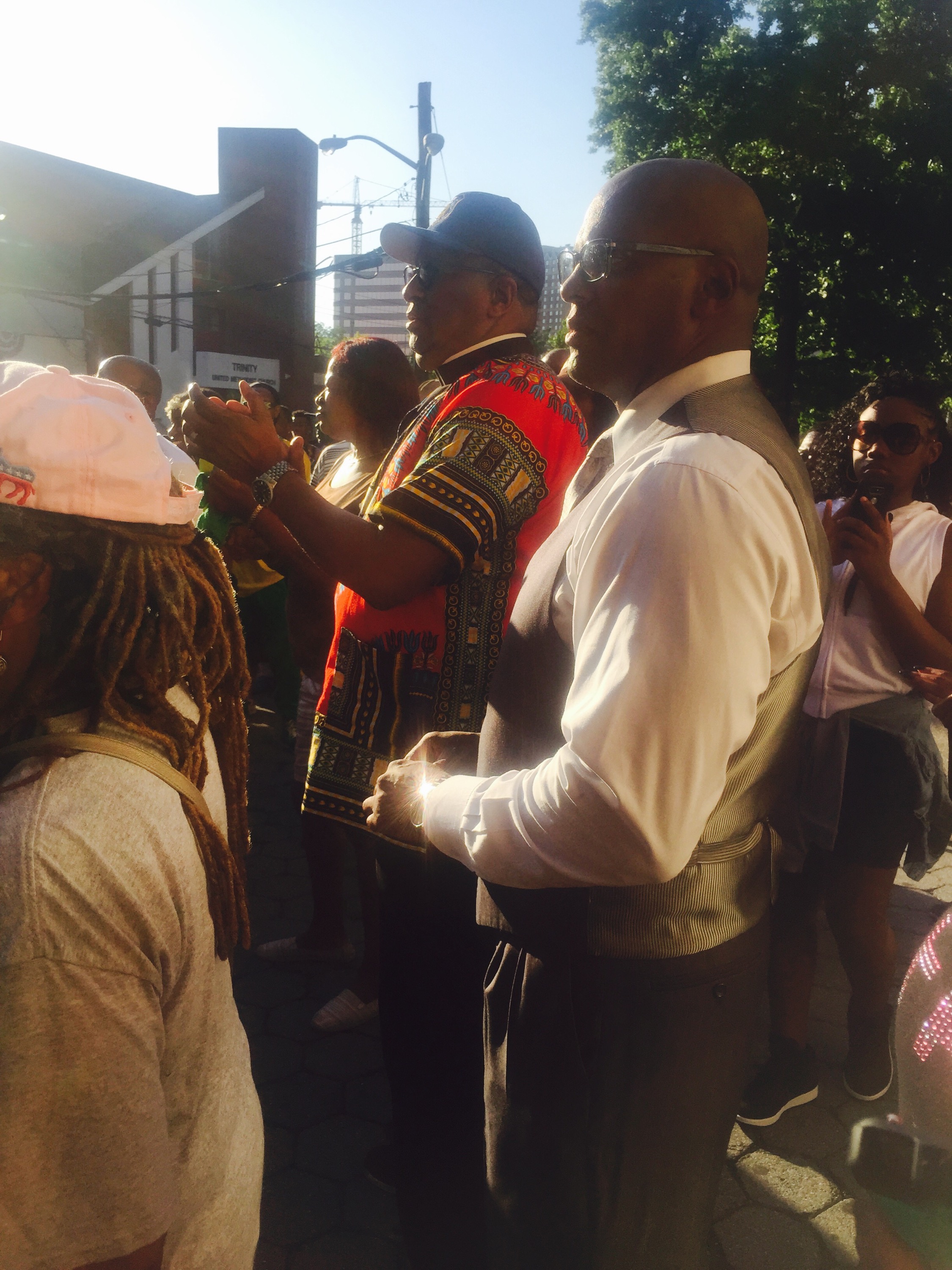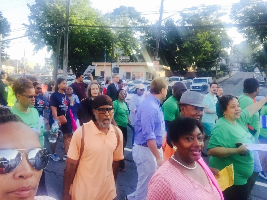 United as one Westchester neighbors marched in a roar for Justice. The call was made to gather at Calvary Baptist Church at 6:00pm. By 6:15pm there were at least 200 people in the parking lot. Everyone present agreed that this is wrong. The clergy lead in prayer as the people of Westchester County walked in power. We stopped at various points in White Plains with pastors, Senator Stewart Cousins, members of Raynette Turners’ family, NAACP of White Plains, members from Delta Sigma Theta of the Westchester Alumnae chapter and Kenneth Chamberlain Jr. warrior against police brutality.