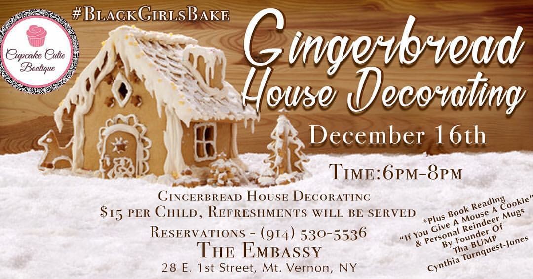 Icing and candy and cupcakes galore! Children with smiles and parents at the door! Black Girls Bake hosted their first “Gingerbread House Party.” Black Girls Bake was founded by Miesha the CEO of Cupcake Cutie Boutique located on 8 South 6th Avenue., Mount Vernon, New York.