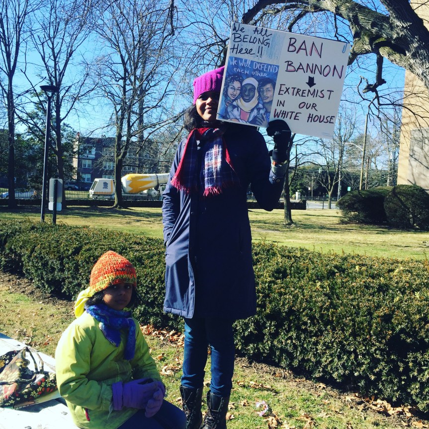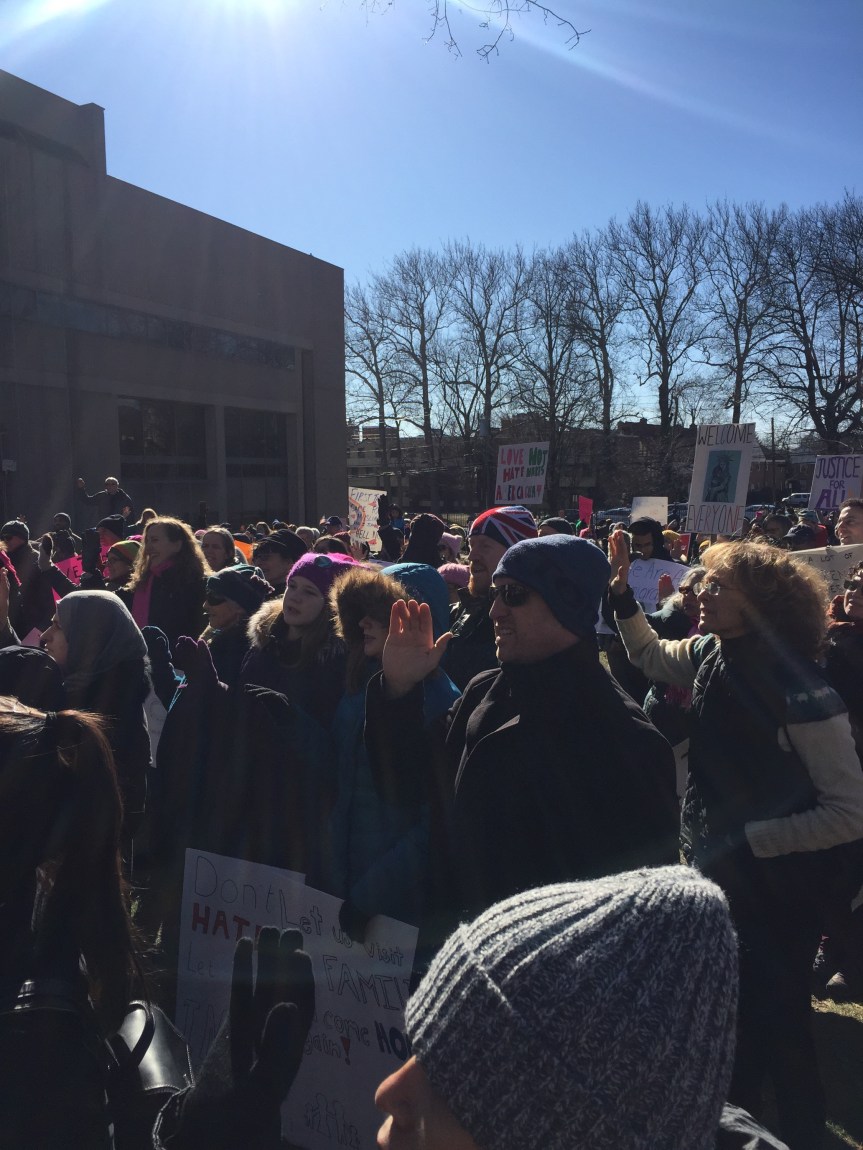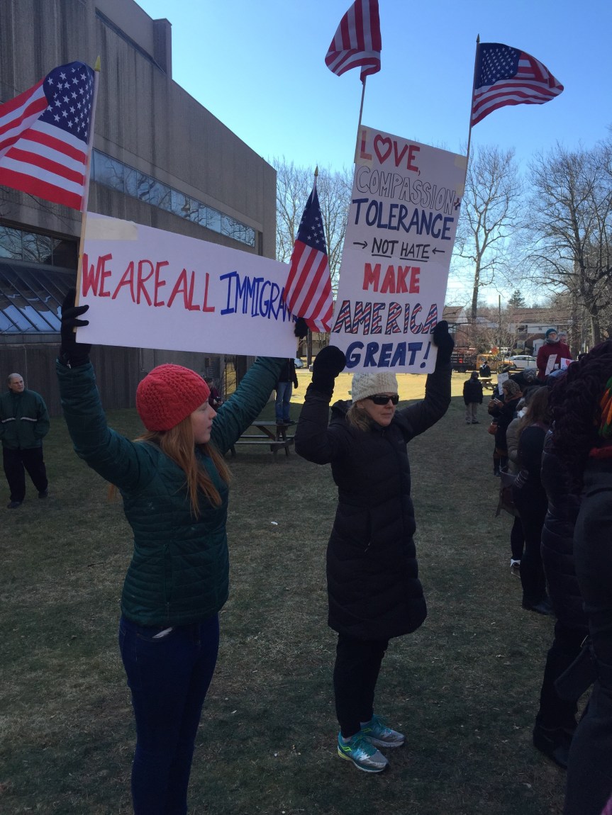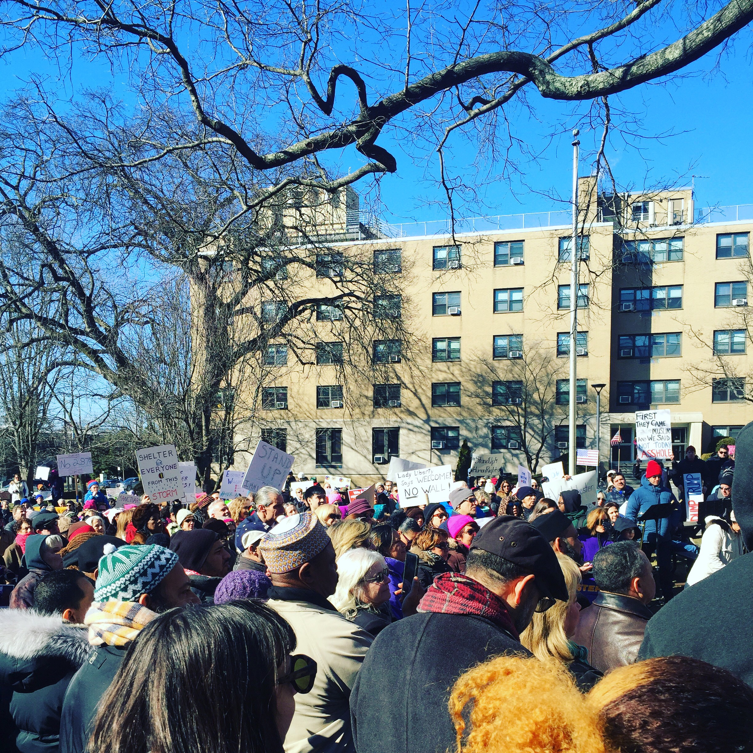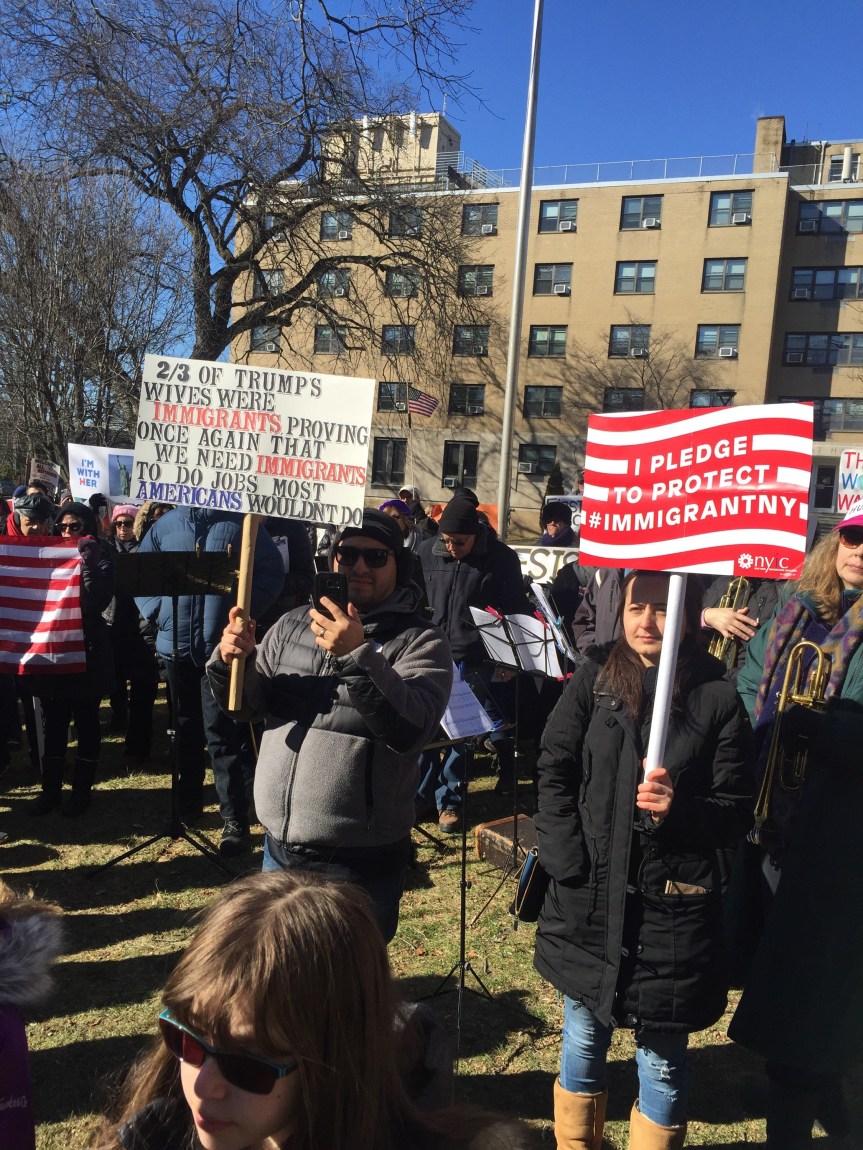 We stood beside one another on a cold Saturday afternoon with the sun warming us in-between chants and signs waving. “Resist. Unite. We will win this fight!” Residents of Westchester County joined to rally for immigrants. It was the third Saturday in a row since Trump’s inauguration that protesters flooded streets, public parks and plazas to express displeasure with the new president’s agenda.