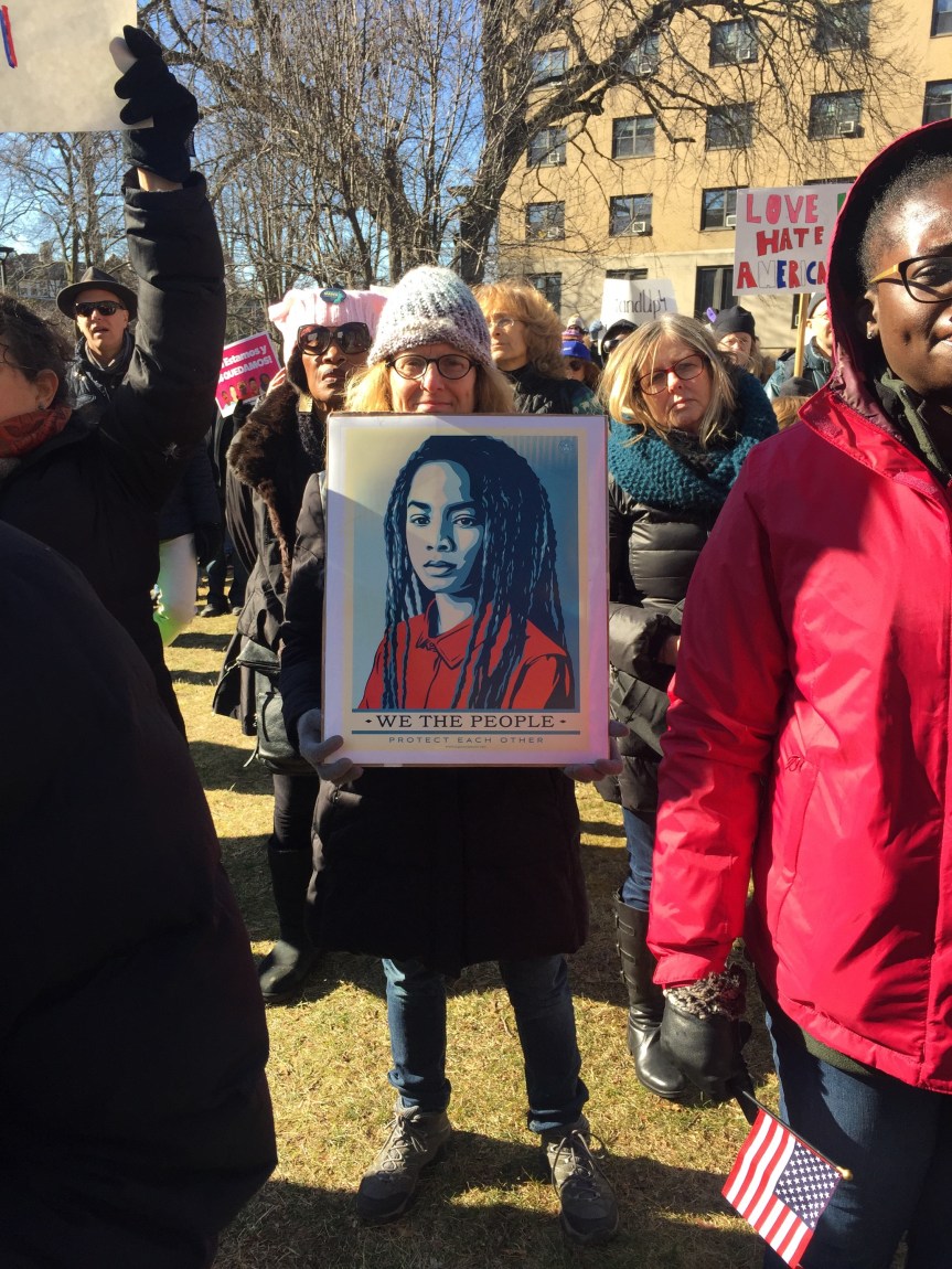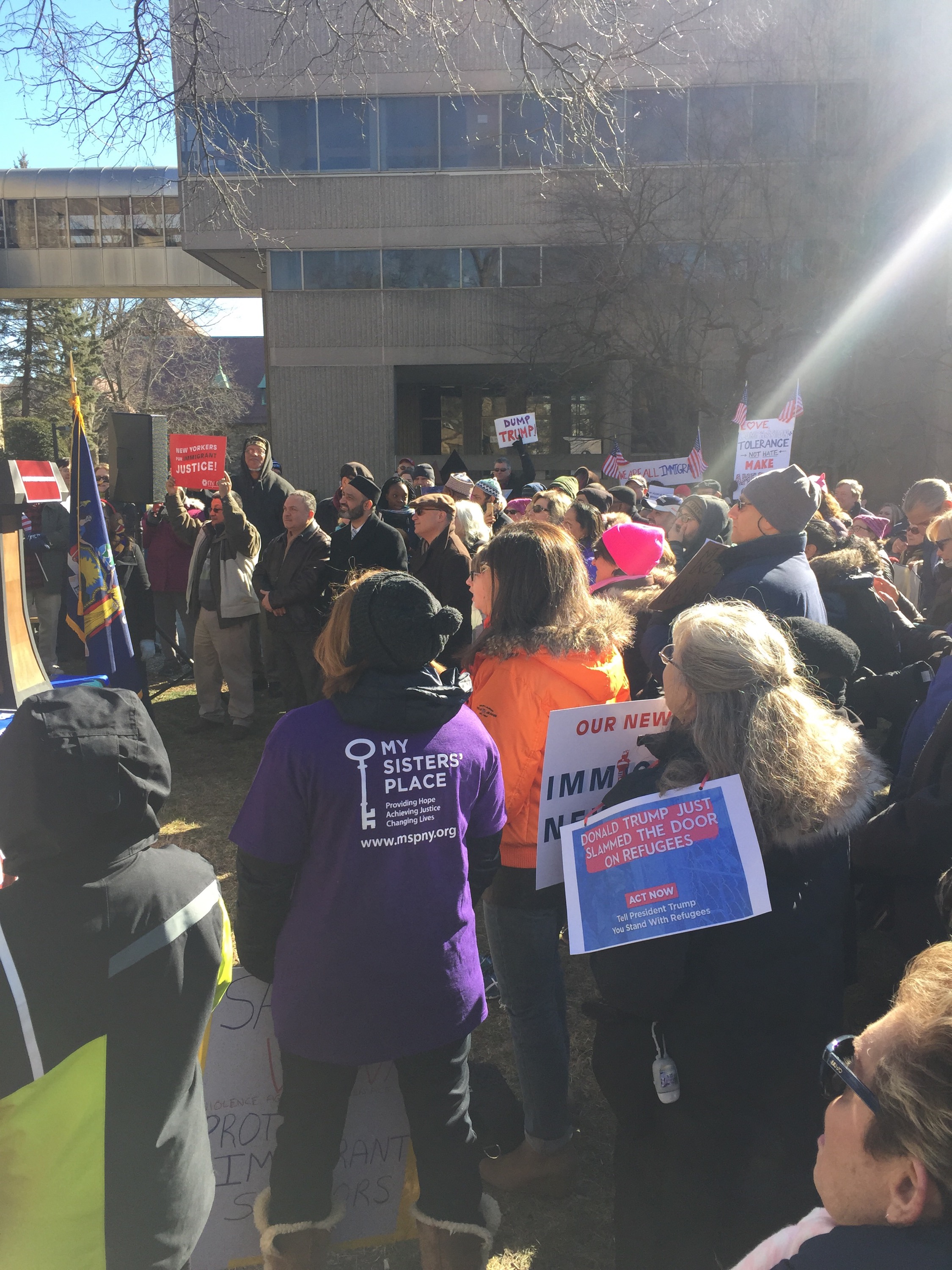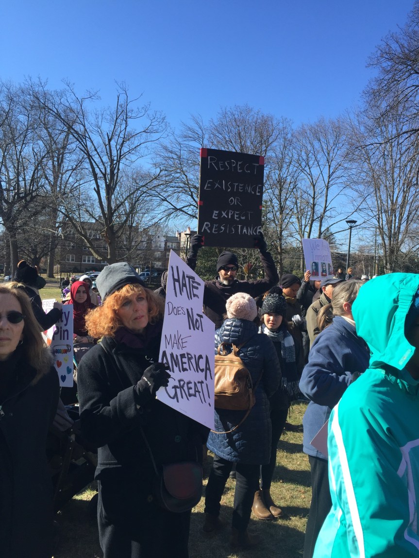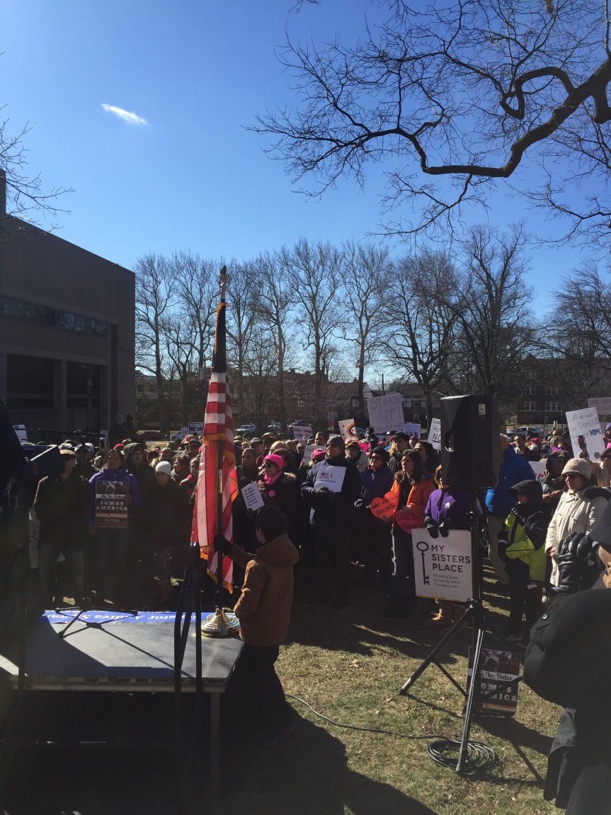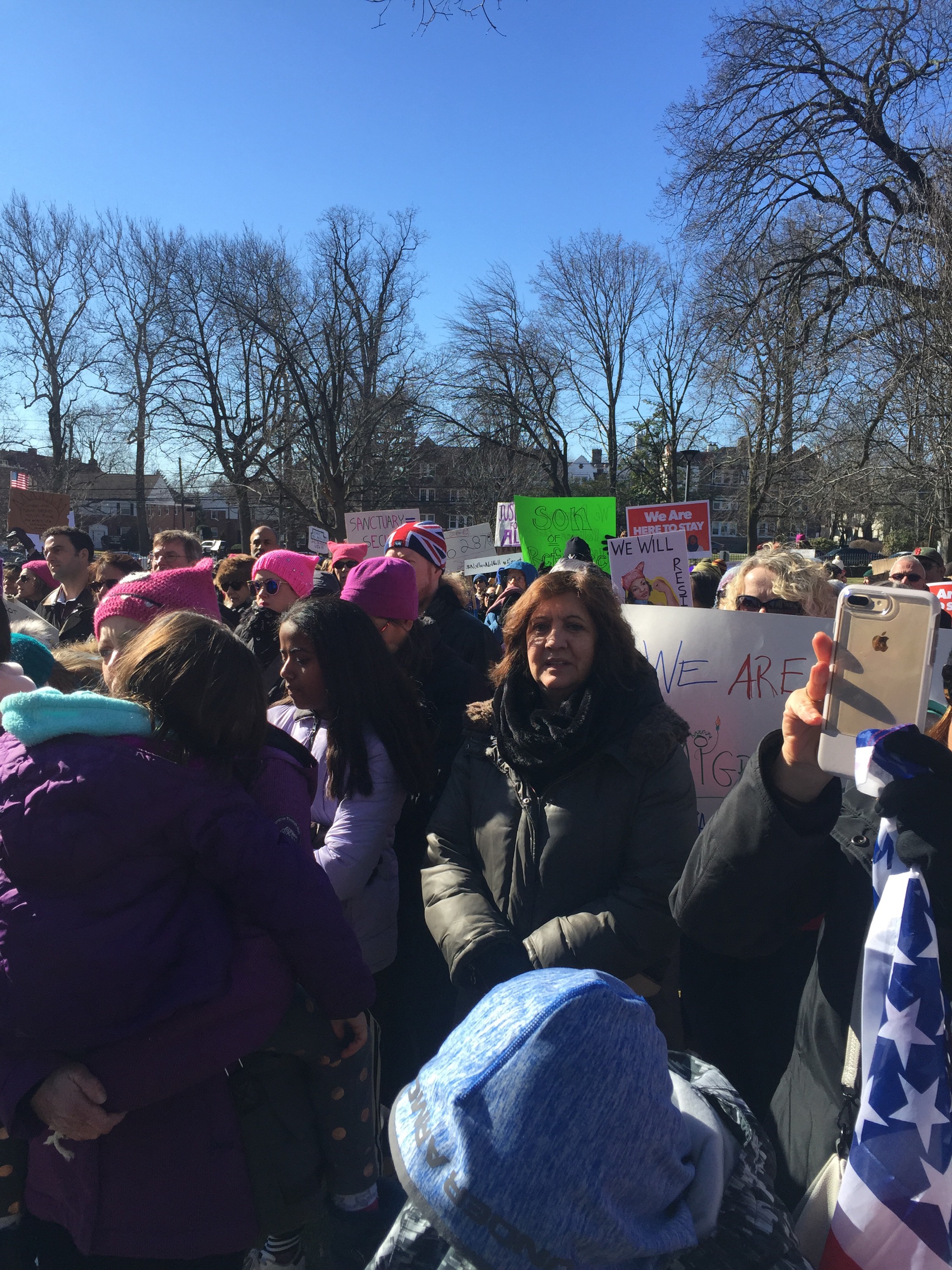 We stood beside one another on a cold Saturday afternoon with the sun warming us in-between chants and signs waving. “Resist. Unite. We will win this fight!” Residents of Westchester County joined to rally for immigrants. It was the third Saturday in a row since Trump’s inauguration that protesters flooded streets, public parks and plazas to express displeasure with the new president’s agenda.