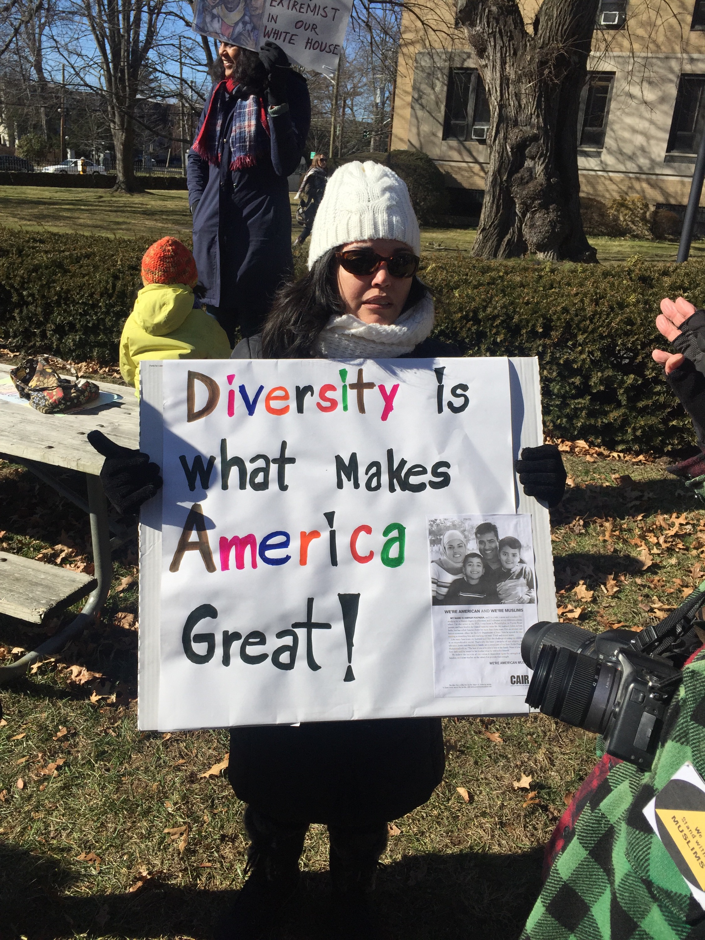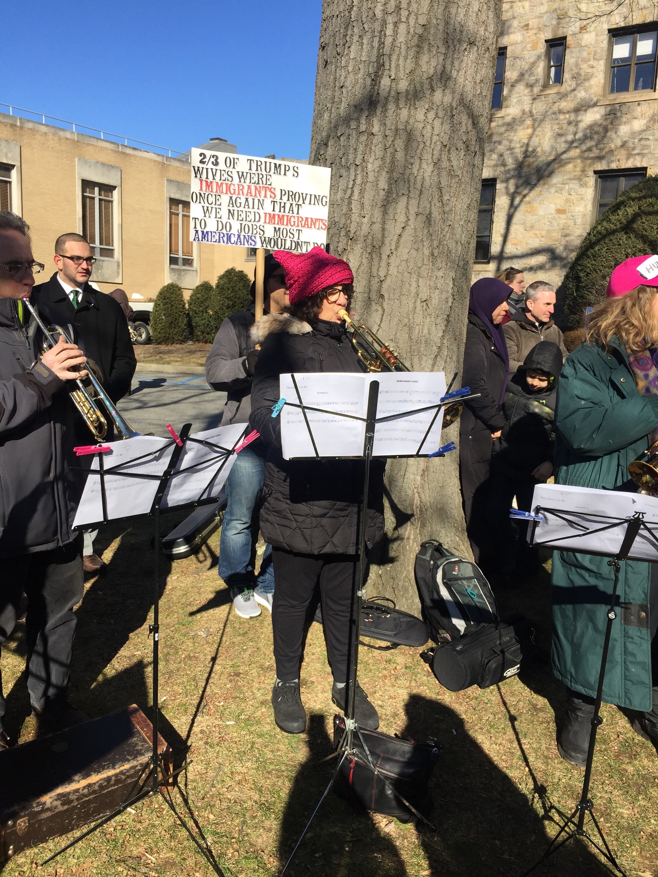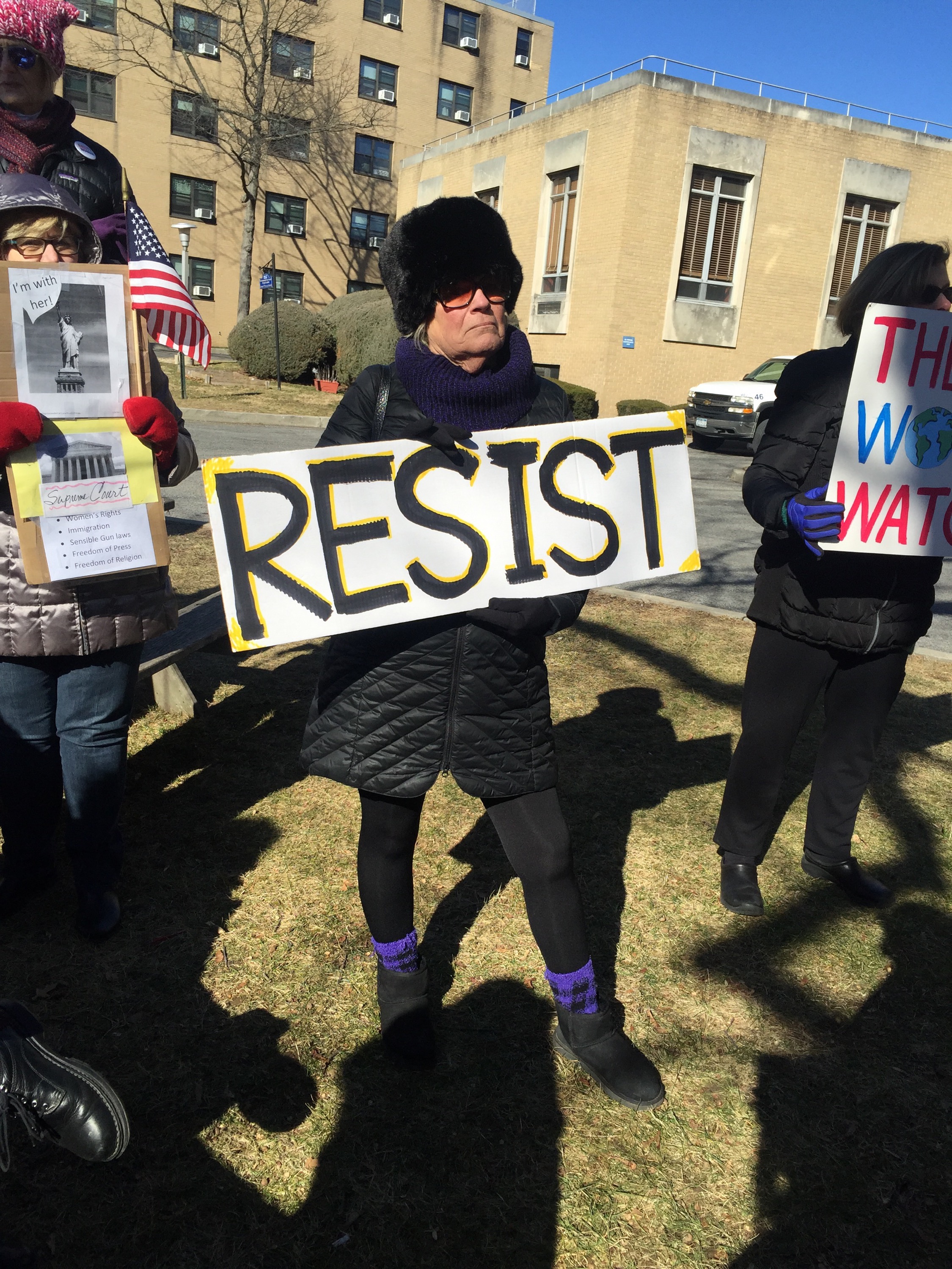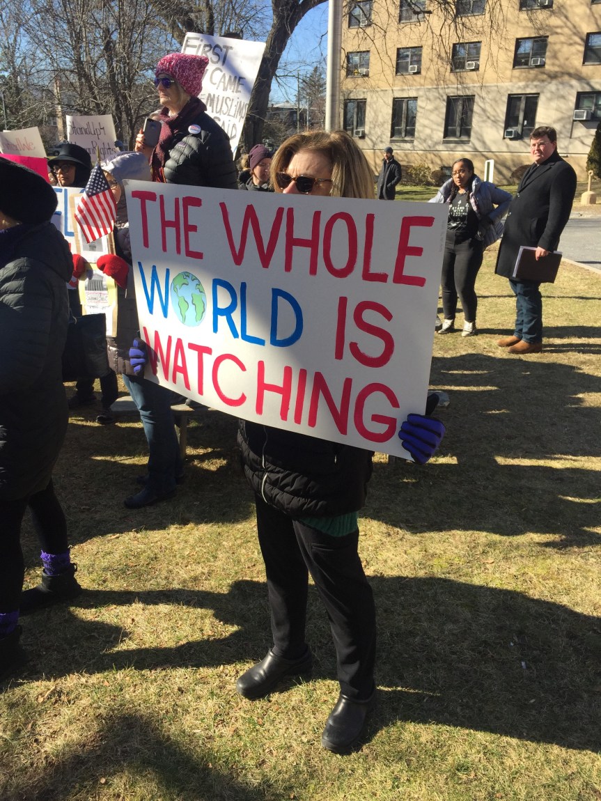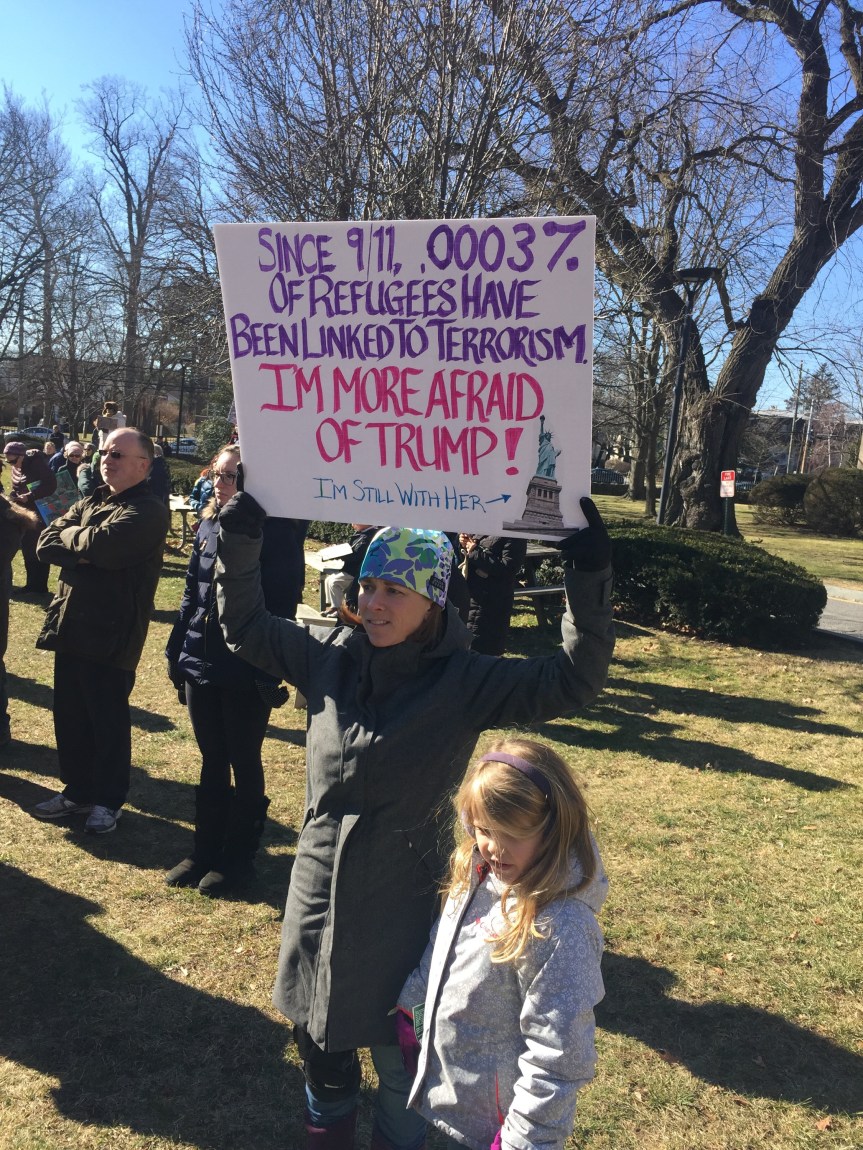 We stood beside one another on a cold Saturday afternoon with the sun warming us in-between chants and signs waving. “Resist. Unite. We will win this fight!” Residents of Westchester County joined to rally for immigrants. It was the third Saturday in a row since Trump’s inauguration that protesters flooded streets, public parks and plazas to express displeasure with the new president’s agenda.