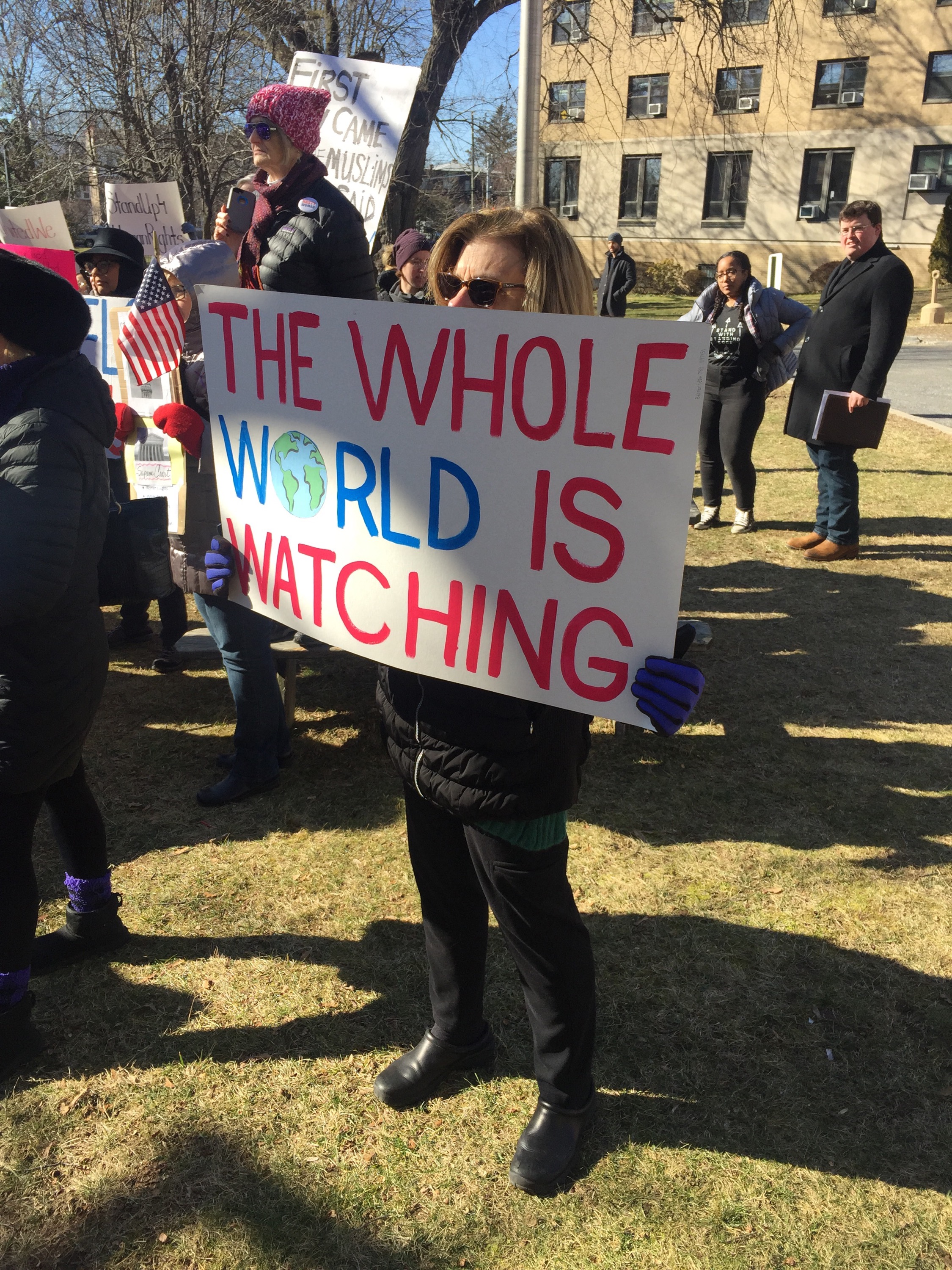 As we rallied an announcement was made that a federal judge has put a nationwide block on United States President Donald Trump’s week-old executive order temporarily barring refugees and nationals from seven Muslim-majority countries from entering the United States. Trump’s executive order, bars Syrian refugees indefinitely and blocks citizens of Iran, Iraq, Libya, Somalia, Sudan, Syria and Yemen from entry into the US for 90 days. Refugees from countries other than Syria are barred from entry for 120 days.