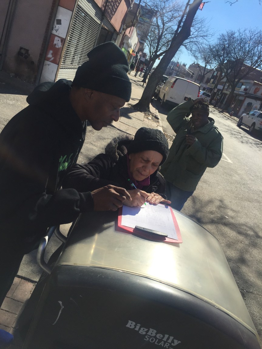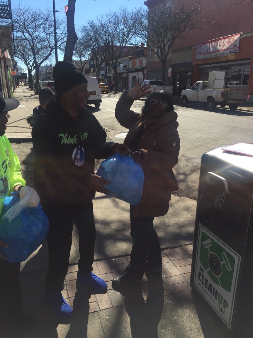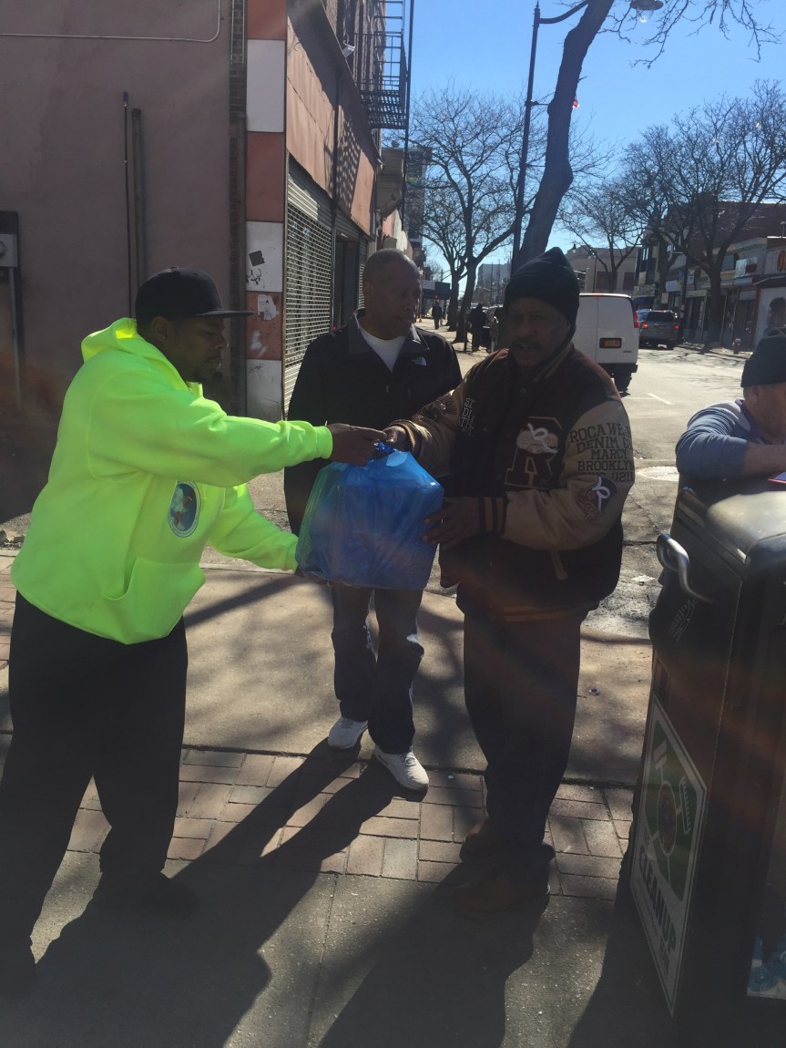 “Good afternoon my brother” is how they greeted each person passing. “Would you like a bag?” Many stopped and knew Ken and Charles by name. New people asked what was in the bag and once explained they smiled with, “Sure!” as a bag was handed to them. Ken said, “We started the displacement of food package for returning citizens who come thru this program. Part of our program is geared towards redemption; the act of making something better.”