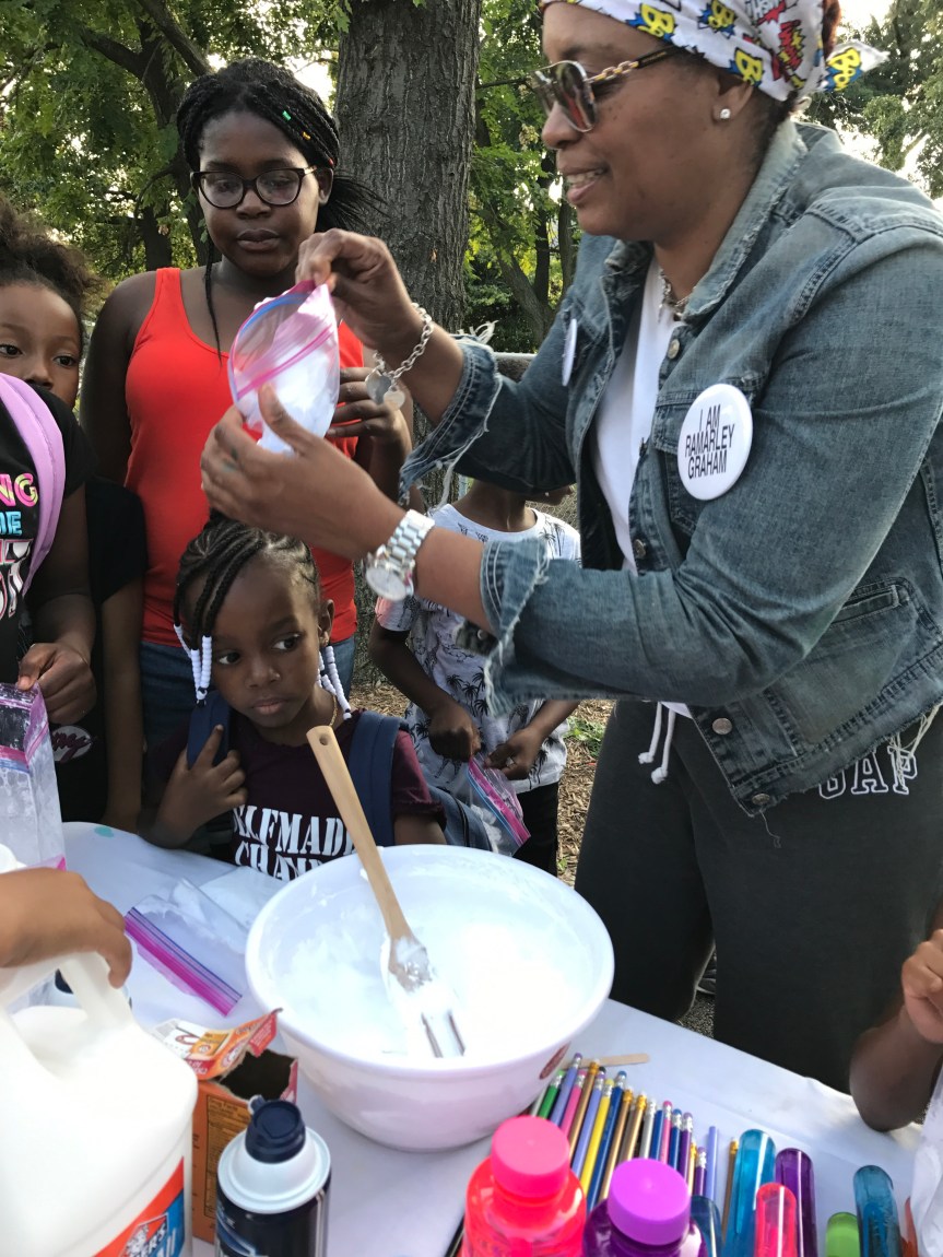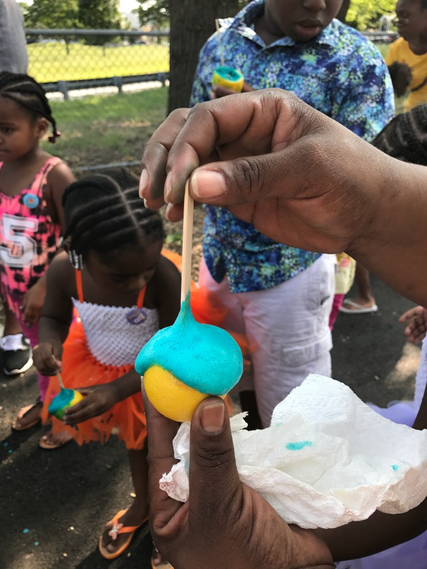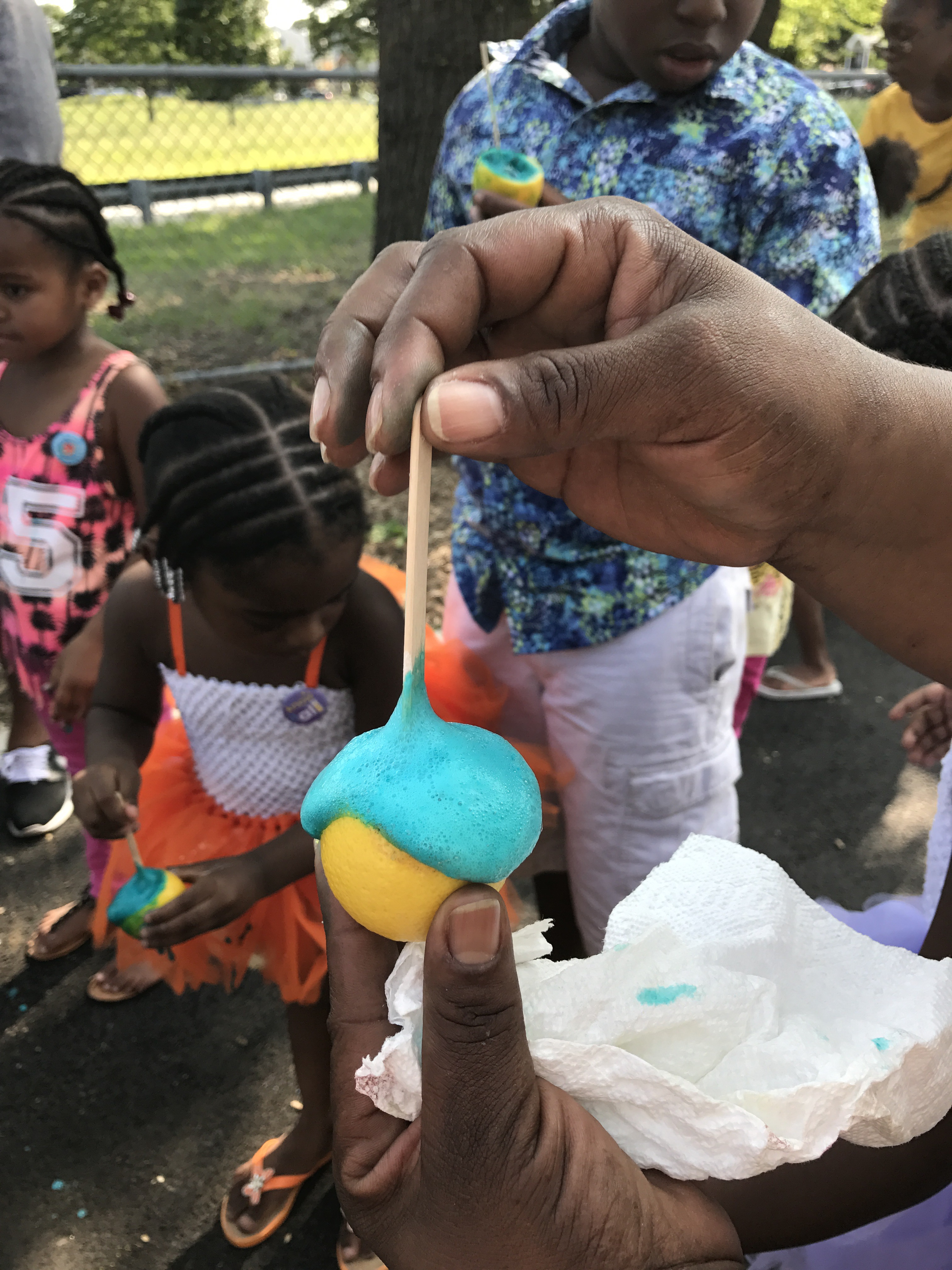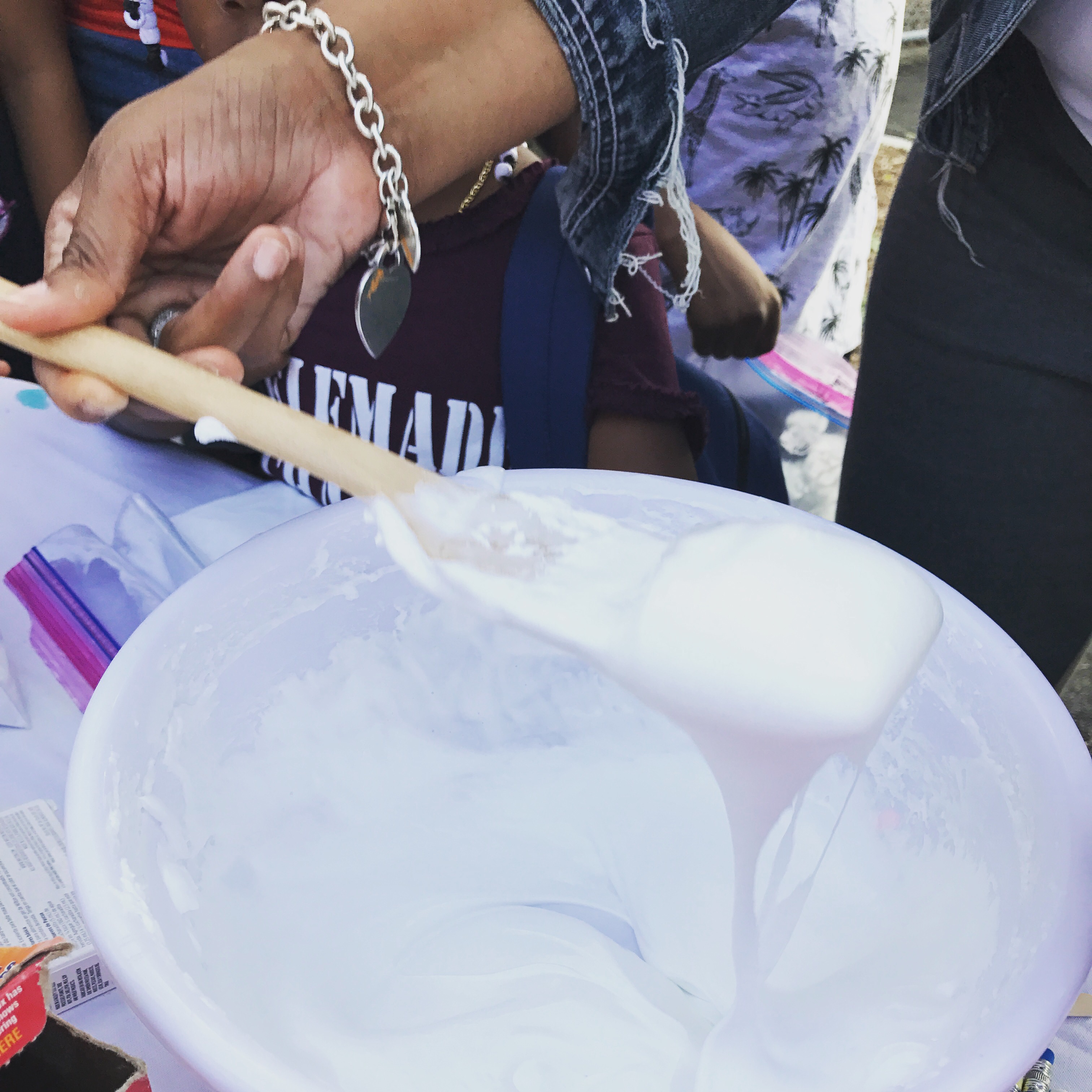 Hanging Out with future Scientist, Technicians, Engineer, and Mathematicians at this Back-to-School Event was a fulfilling experience. Little builders enjoying the “Design Challenge” of engineering with straws and playdough. What can they build in five minutes? The Lemon Volcano experience was epic. They tasted the lemon and were able to explain all of the various ways you can use lemons. I explained that lemon juice contains citric acid which when mixed with baking soda (sodium bicarbonate) reacts to form carbon dioxide and sodium citrate, which causes the liquid to fizz and bubble. Citric acid is a common food additive used in soft drinks as a preservative and flavoring. What will happen when you add dish detergent, food coloring, and baking soda? Our last inquiry was what happened when you mix various solutions? This was the last experiment. The SLIME crazy started quietly last summer, when social media watchers began buzzing about it. Tweens had struck on a recipe for a mucilaginous, stomach-turning substance and were posting videos of themselves playing with it.
