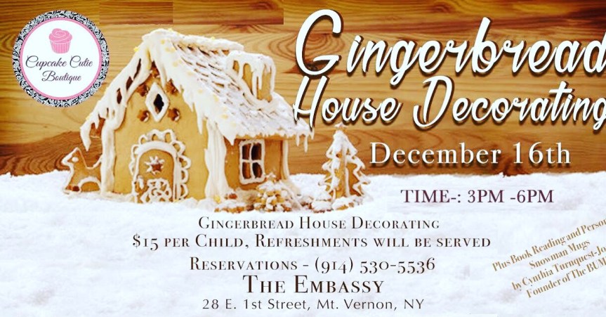 The Gingerbread Bread Party in Mt. Vernon was a hit. There wasn’t a dull moment. The founder of Cupcake Cutie Boutique & #BlackGirlsBake plus a member of Alpha Kappa Alpha Sorority Miesha Stokley rocked the house. Children were excited while creating their versions of a Gingerbread House.