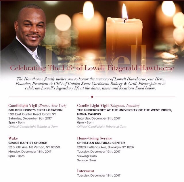 It was a celebration of the life of Lowell Fitzgerald Hawthorne known as the “Patty King”. He was recognized as a man, husband, son, father, friend, and boss. There was another side of Lowell many got to learn of at this tragic time. He was a Jamaican hero, a philantropist and entrepreneur of one of the top franchisee in the United States of America.