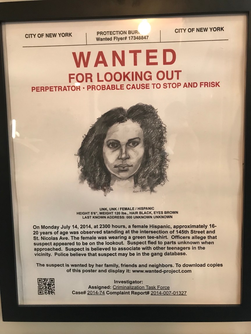 “I Wanted” is a community-based art project that addresses the communication of use in America. The piece can be viewed in both an art exhibition and on the streets of Harlem New York. It resembles a series of “Police Wanted Posters” which featured a police sketch of a young adult, a description of them, and a statement of what they are wanting more.