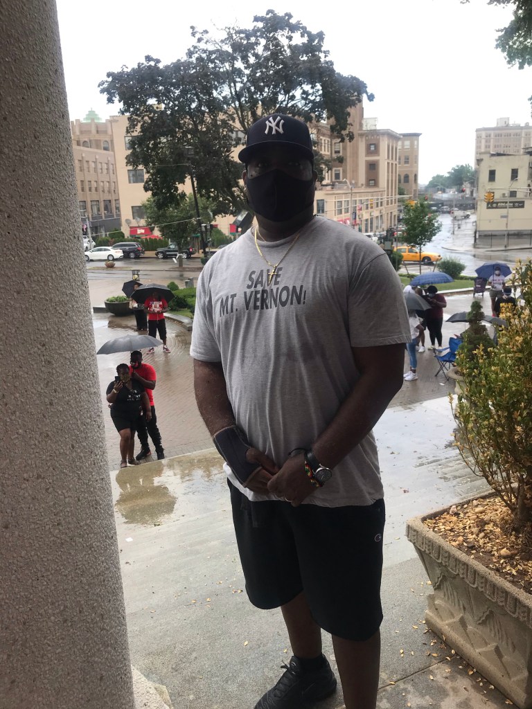The weather was unpredictable in Mount Vernon, New York but that did not stop concerned citizens to speak out. Jesse Van Lew is consistent with his three words “Save Mount Vernon”. The darkness of his health did not stop Jesse as he stood in the rain chanting “Save Mount Vernon! Save Mount Vernon!”