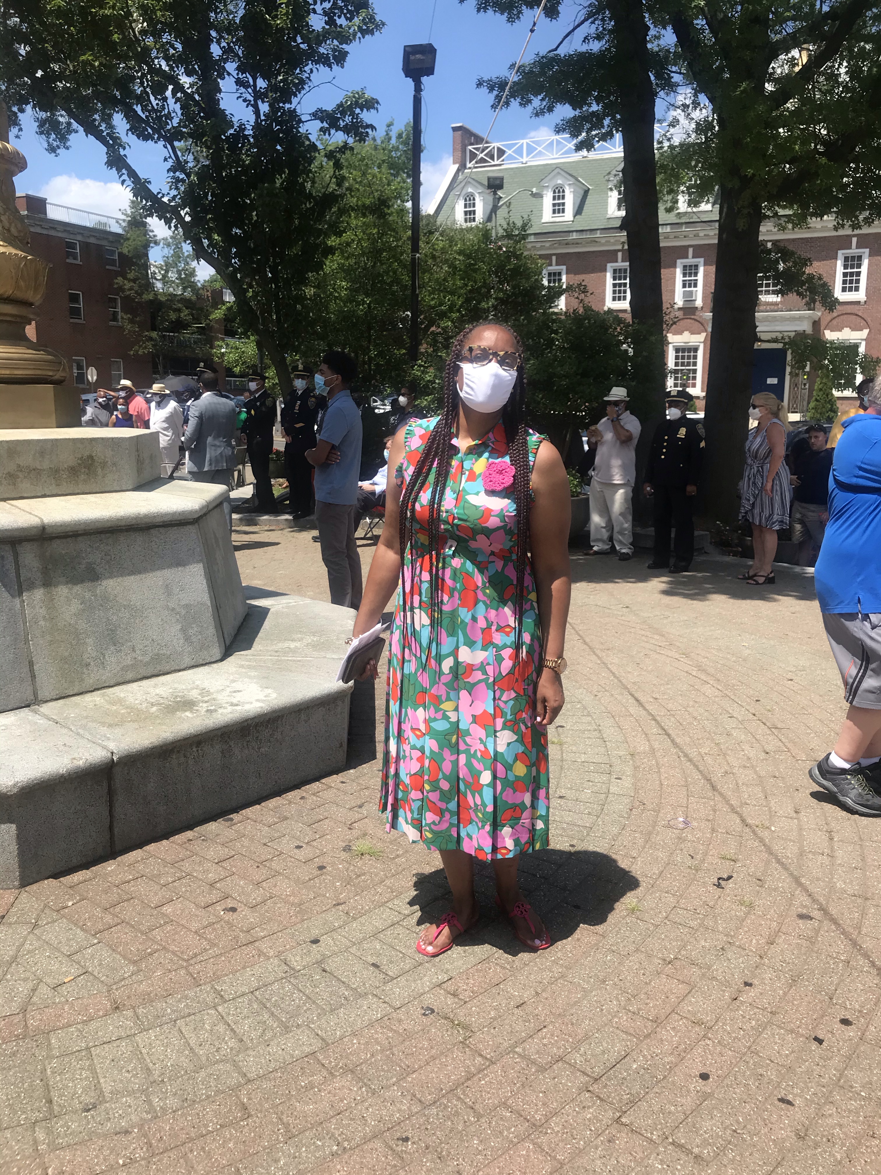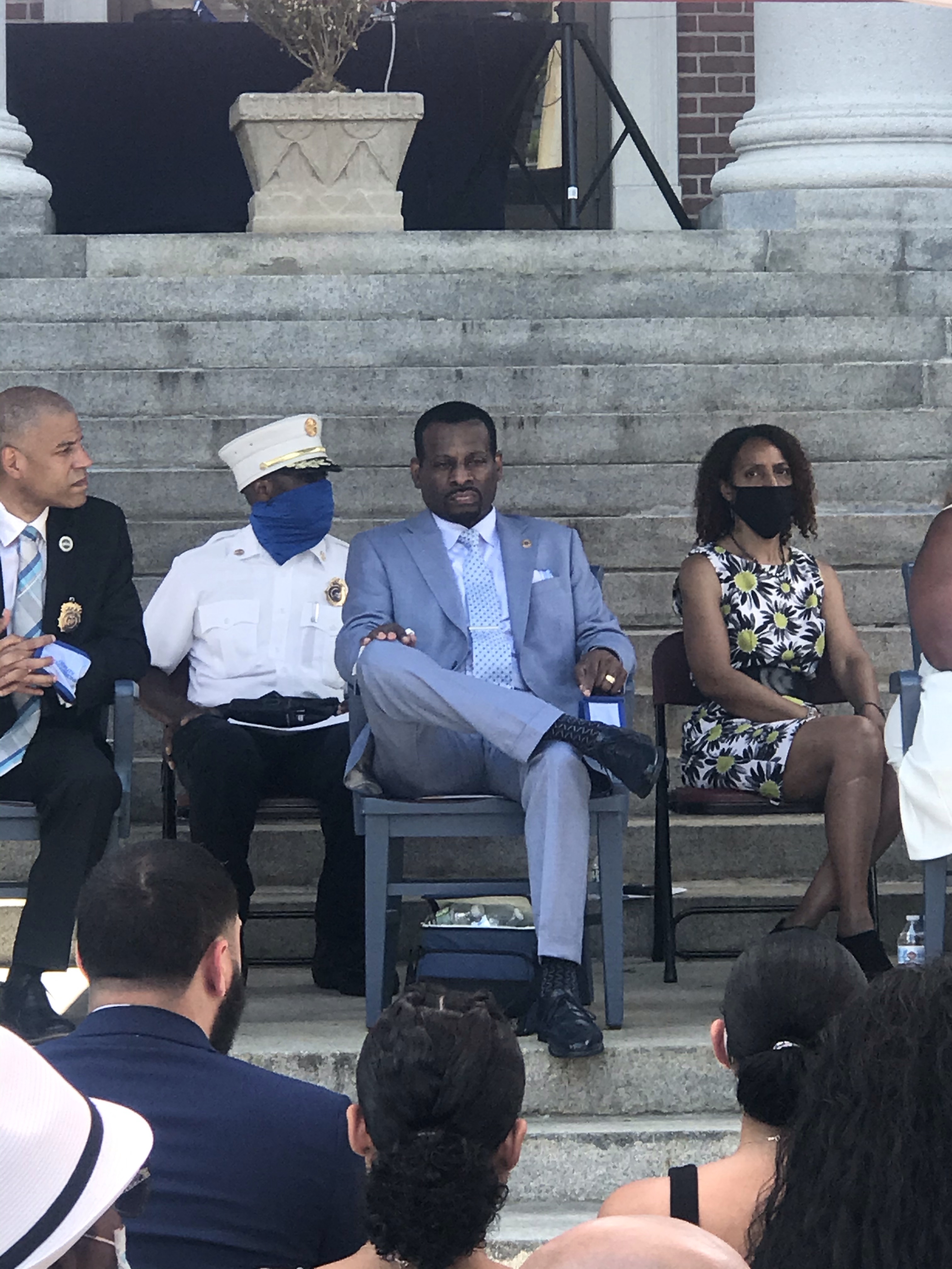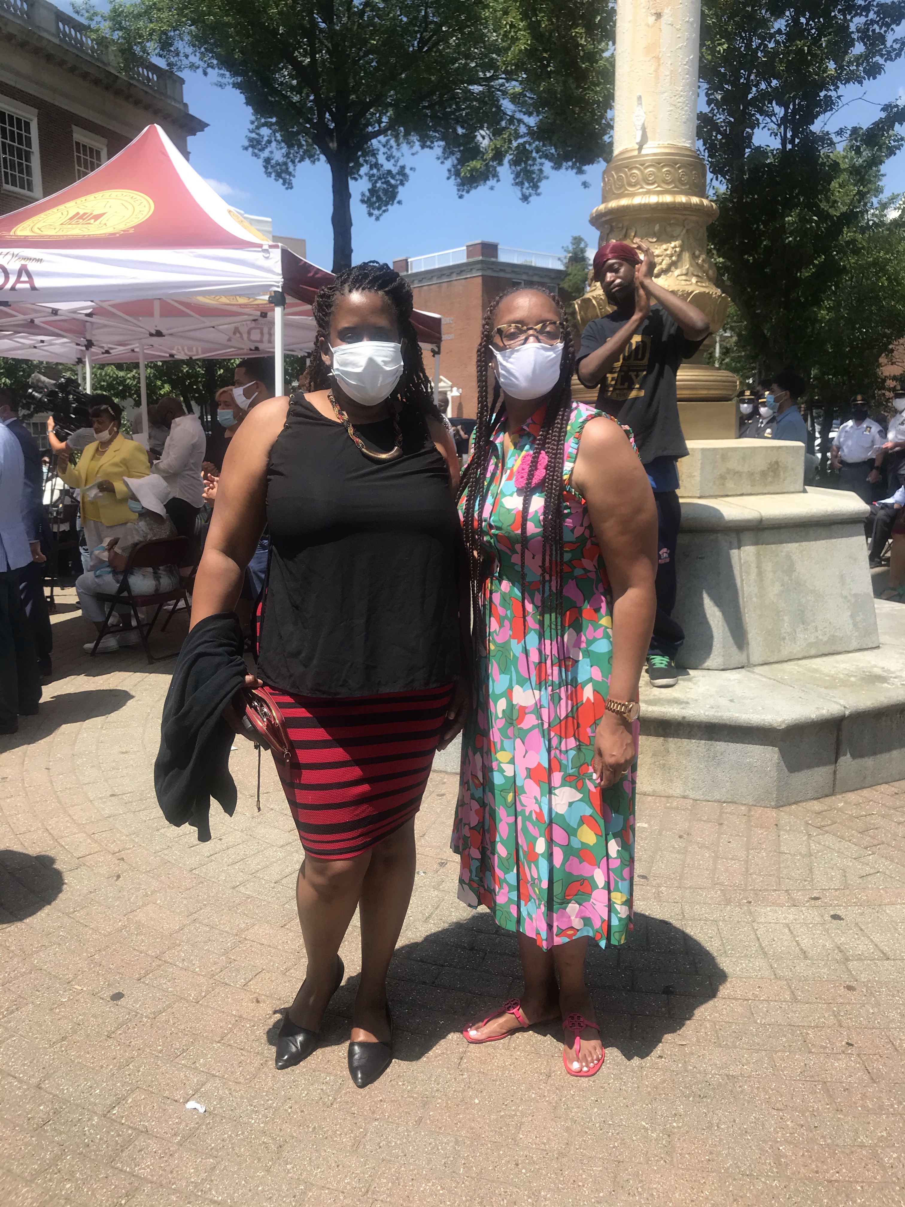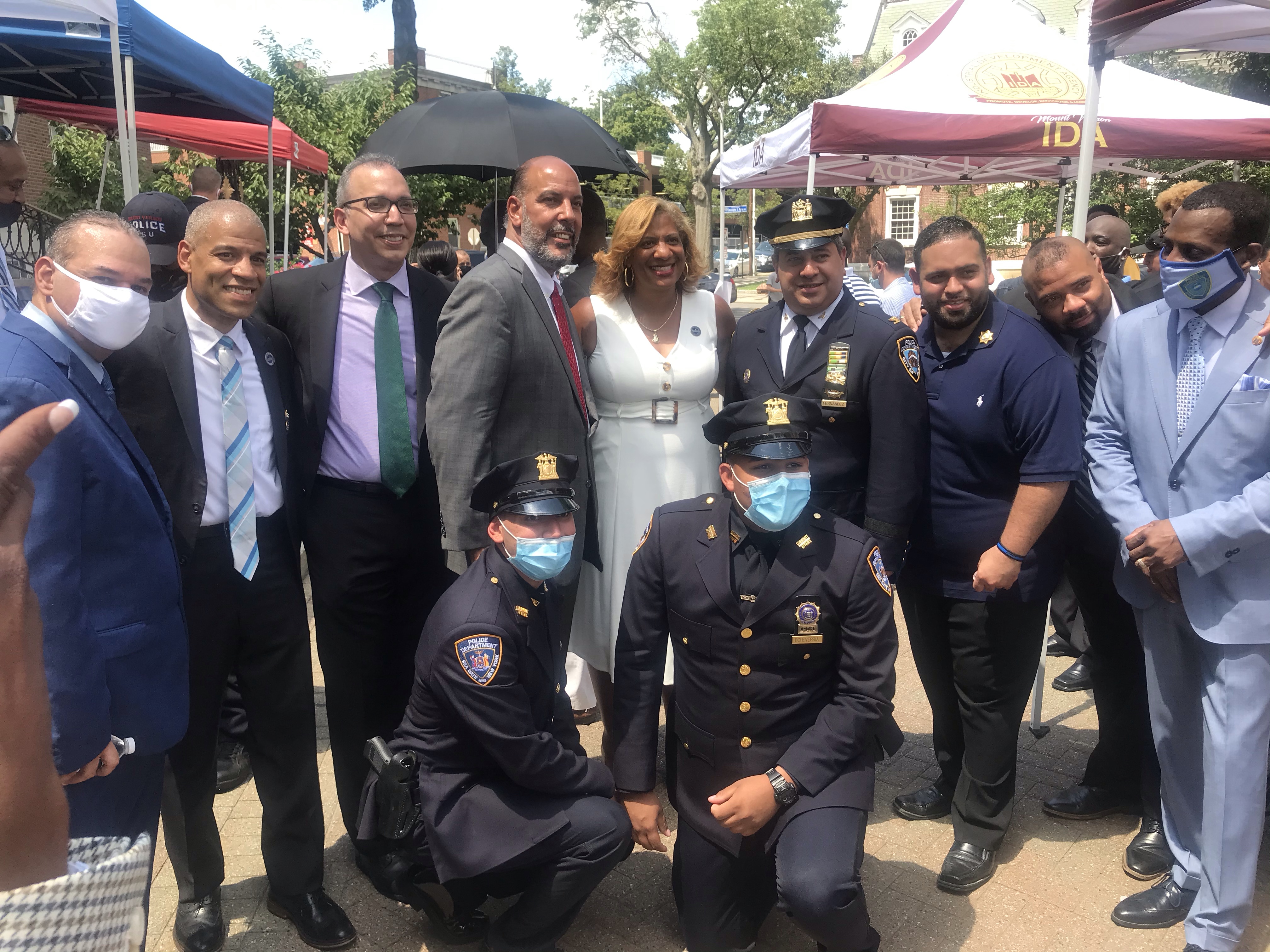 Cynthia Turnquest-Jones, Tha BUMP [left] Priscilla Echi, Social Butterfly [right] congratulates Jennifer Lackard [middle] who was sworn in as Deputy Police Commisioner of Special Initiatives in Mount Vernon, New York today July 21, 2020.