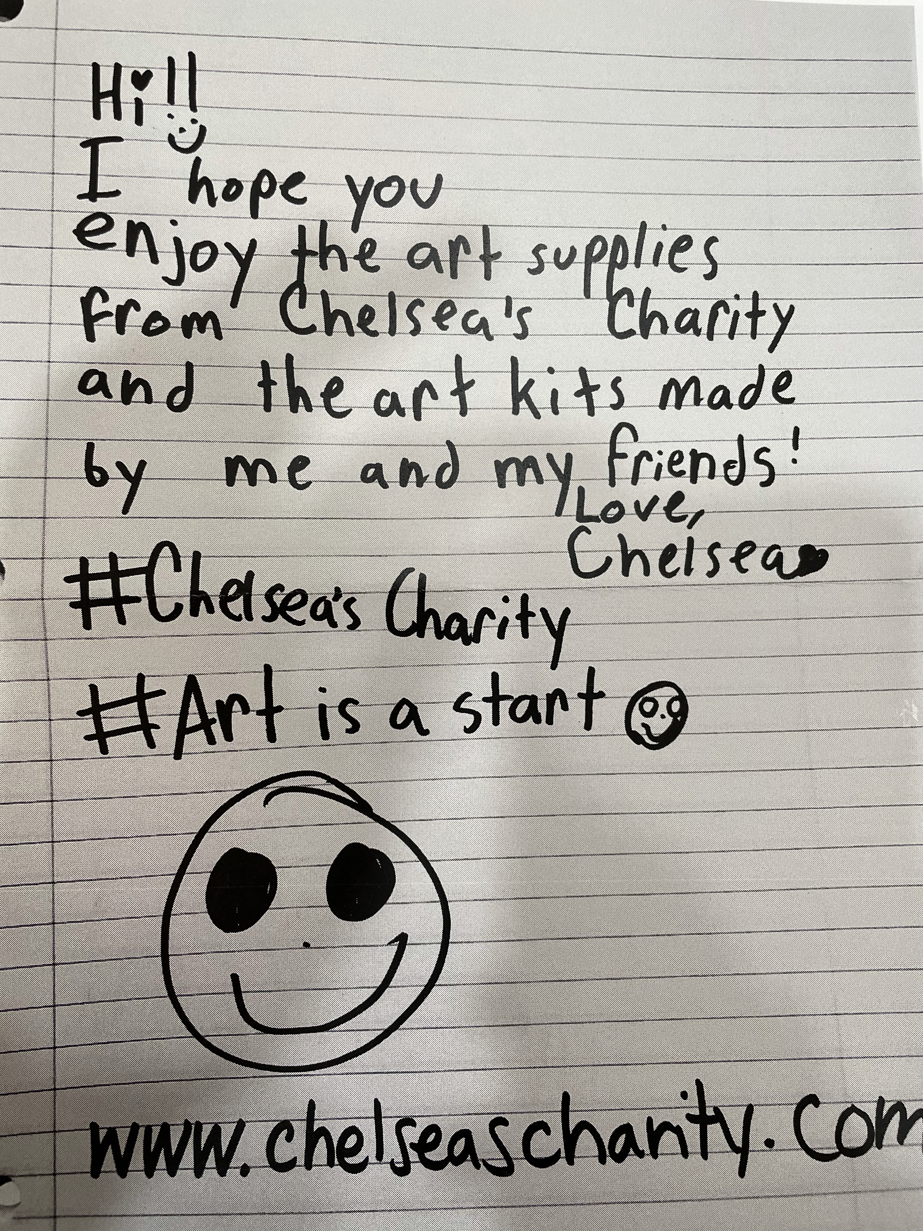 Chelsea’s Charity is a unique charity. In the Summer of 2019 Chelsea Phaire’s was turning 10. She wasn’t interested in gifts. She asked her guests to bring art supplies instead. Crayons, markers, paper and colored pencils turning into forty kits which she then delivered to a New York homeless shelter. These happy faces created a want for Chelsea to do more.