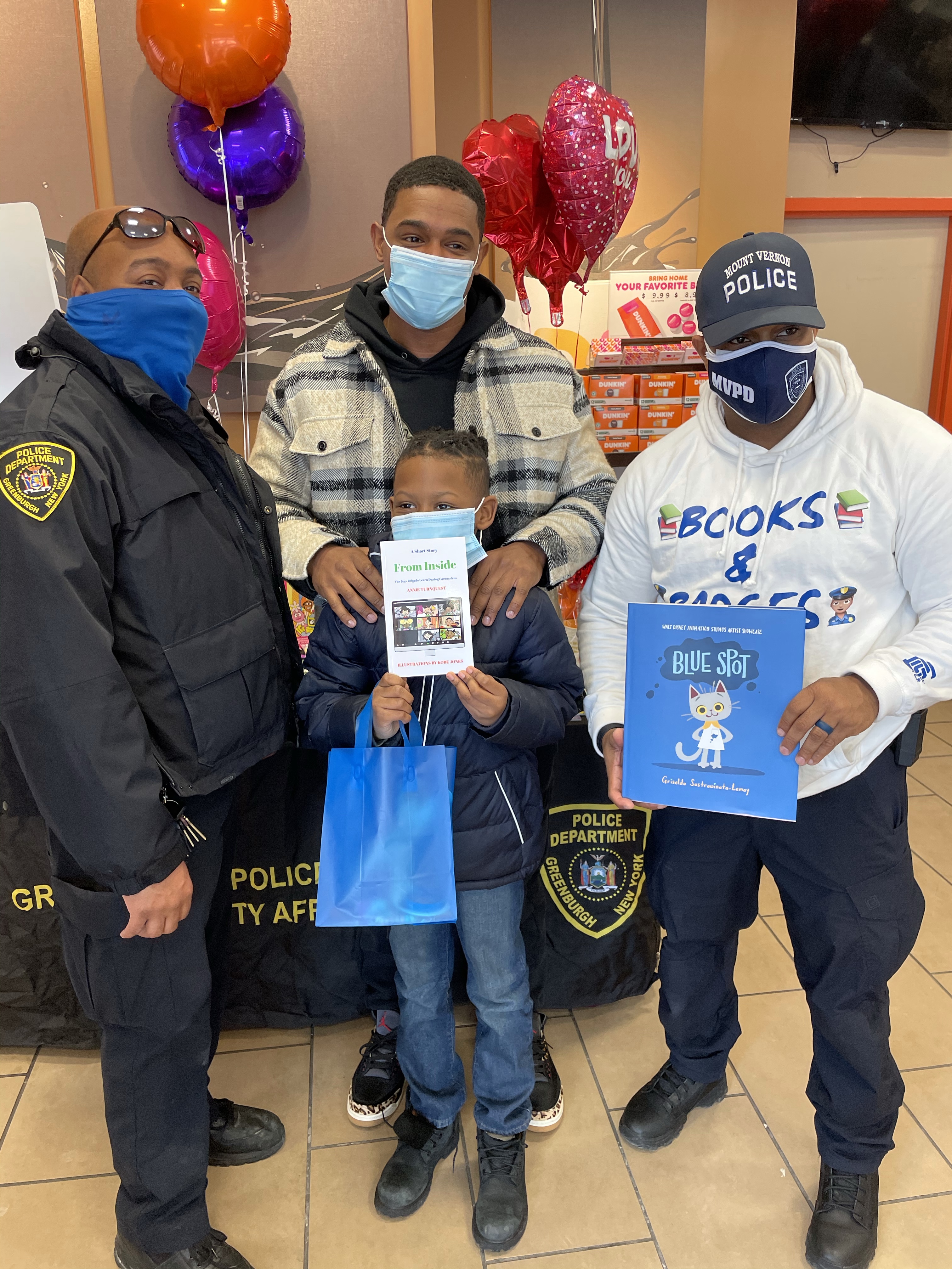 Books, Badges and Beverages was the next stop on the Nuthin’ But Love train. Joined with Detective David Clarke and Detective Montika Jones of Mount Vernon Police Department. Tha B.U.M.P collaborated with both detectives co-sponsoring the event. This time they partnered with the Greenburgh Police Department and Dunkin Dounuts located on Tarrytown Road, White Plains, NY. over 60 books were distributed and donuts were free to enjoy while reading.