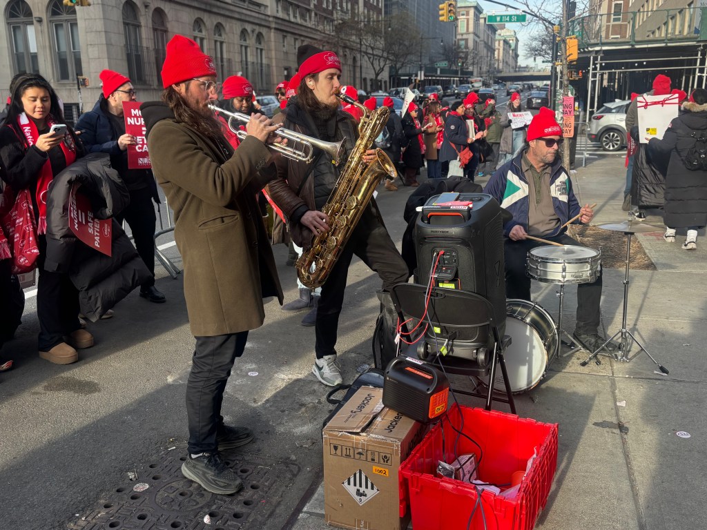 Nurses on the picket line had a new target: the traveling nurses being brought in to replace them temporarily. At NewYork-Presbyterian Columbia University Irving Medical Center, a steady stream of buses carrying replacement nurses rolled in. Each one was met by demonstrators holding signs, chanting, and pleading for solidarity.